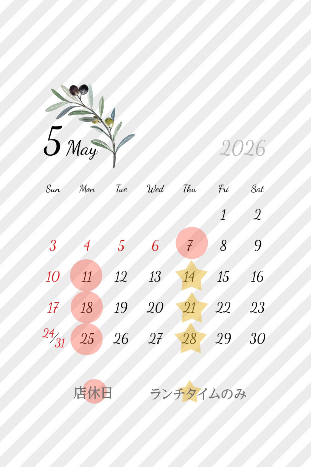 ■5月営業カレンダー■